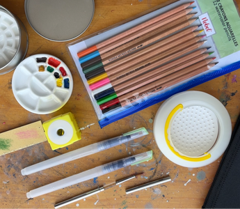 Réduisez les crayons aquarelle en une fine poudre pigmentaire pour créer des lavis vibrants et expressifs ou un mélange contrôlé sur une palette.