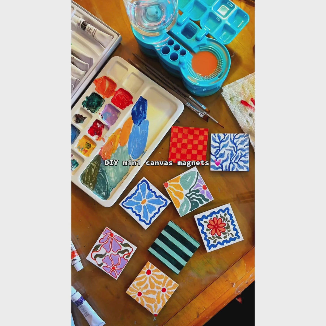 Un ensemble de mini-toiles magnétiques à glisser dans le réfrigérateur, transformant vos petites créations en objets décoratifs instantanés. Chaque mini-toile est tendue sur un tissu 100 % coton sans acide, offrant la même qualité de surface qu'une toile classique, dans un format de poche. Peignez, dessinez ou offrez vos mini-chefs-d'œuvre, puis fixez-les sur un tableau magnétique, le réfrigérateur ou une étagère de votre atelier. Idéal pour les créateurs qui apprécient les petits formats faciles à exposer.