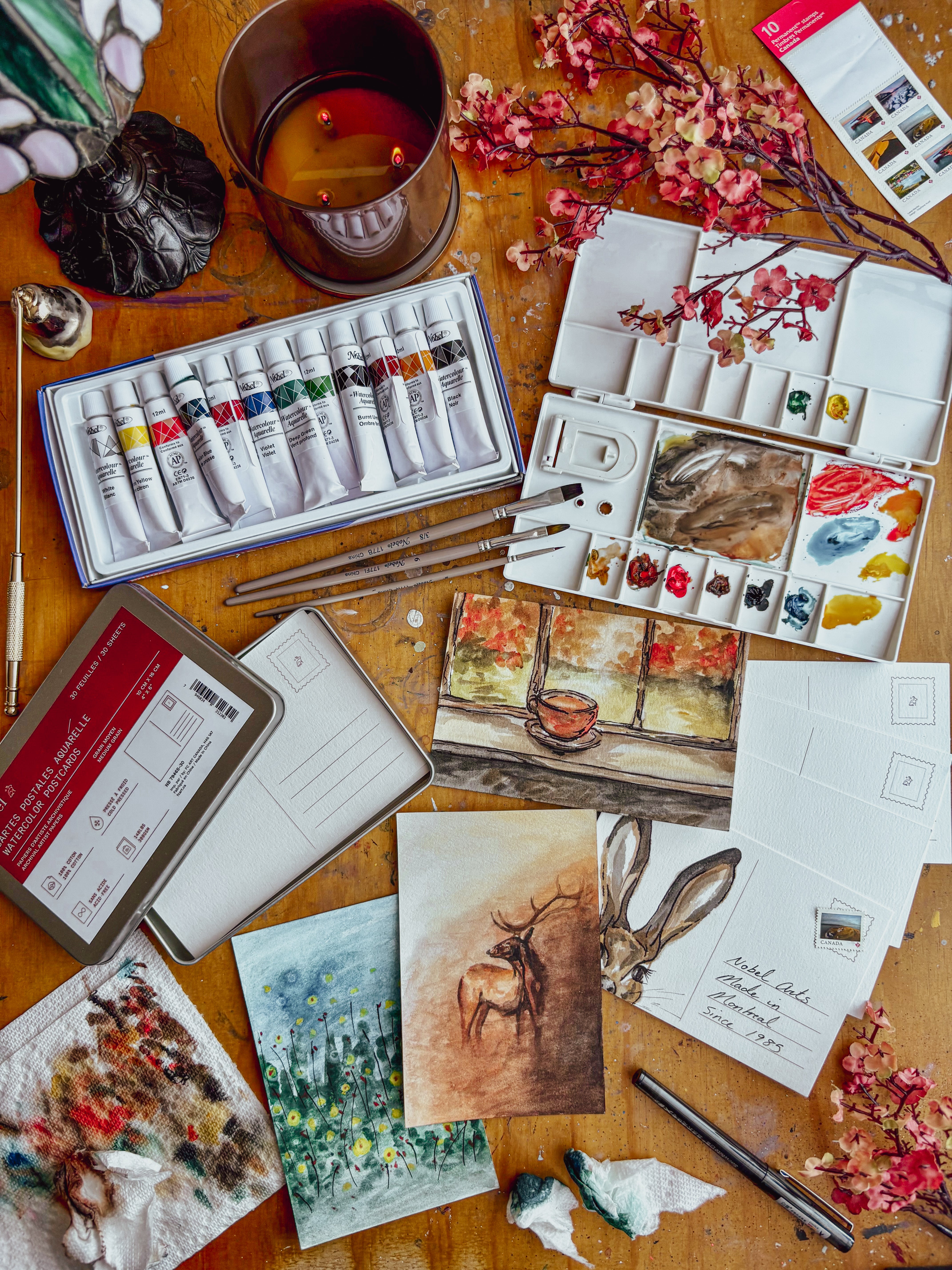Use it to guide your daily postcard adventure. By Halloween, you’ll have a colourful collection of 30 mini artworks inspired by the prompts - and maybe even a few lucky friends who get surprise mail!