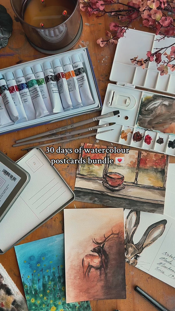 💌 Inktober 2025 - 30 Days of Watercolour Postcards Bundle 💌